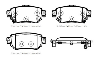X:103.7mm Y:47.0mm Z:15.0mm 1PCS X:103.7mm Y:44.3mm Z:15.0mm 2PCS |