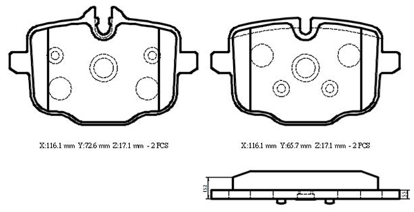 製品寸法 X:116.1mm Y:72.6mm Z:17.1mm
