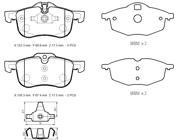 X:155.3mm Y:69.8mm Z:17.5mm X:156.3mm Y:67.4mm Z:17.5mm(4 shim) |